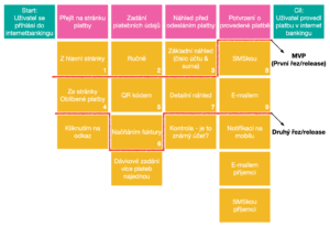 • Prvním výstupem User Story Mappingu je množina User Stories, které dohromady tvoří MVP (Minimal Viable Product).