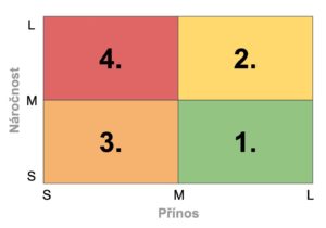 - At this stage, we “iterate” a lot, i.e. we return several times to the basis of the idea, describe several different solutions, among which we prioritize and choose e.g. help Prioritization Cross.